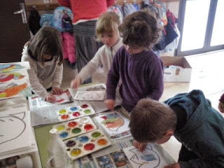 Using our fingers, cotton buds, paintbrushes and anything else our kids want to use, we discover how colours change magically when mixed together... how they get lighter when mixed with a bit of white, or darker when mixed with a touch of black. Magic!!!